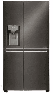 Jeśli chodzi o kostkarkę, to są dwa wyjścia. Albo decydujesz się na urządzenie wewnętrzne, podłączając je do bieżącej wody, albo stawiasz na rozwiązanie zewnętrzne (jak na poniższym zdjęciu model LG GSJ761MCUZ, czyli lodówkę z dodatkowym dystrybutorem, podłączonym do sieci. Nie musisz zatem nawet otwierać lodówki, żeby z niego skorzystać. Jedynym minusem mogą być nieco większe rachunki za prąd. Coś za coś.
